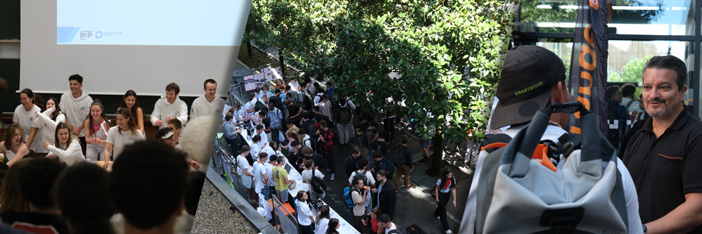 De retour à l’école, les mêmes associations retrouvaient les élèves, à travers différents stands. L’entreprise Orange, partenaire du l’école, tenait aussi un stand et proposait différentes offres attractives pour les étudiant·es arrivant à l’école, et parfois nouvellement arrivés à Grenoble. Nous retrouvions aussi plusieurs jeux et matériels mis à disposition par les associations, afin de faire mieux connaître les activités qu’elles proposent. Par exemple, le club des Polymontagnards a pu ressortir ses skis, et le BDA a également sorti la guitare et la platine de mixage.
