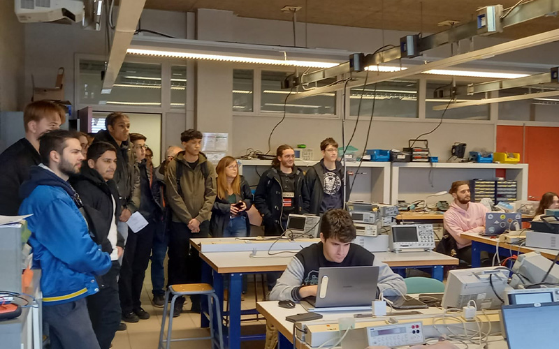 Après une présentation sur les modalités de recrutement à Polytech Grenoble, suivie d'une présentation plus détaillée de la spécialité e2i (Electronique et Informatique Industrielle) par apprentissage qui recrute tous les ans 1 ou plusieurs étudiant·es issus de BTS, les étudiant·es de BTS ont pu visiter les locaux de Polytech Grenoble et certaines de salles de TP caractéristiques.