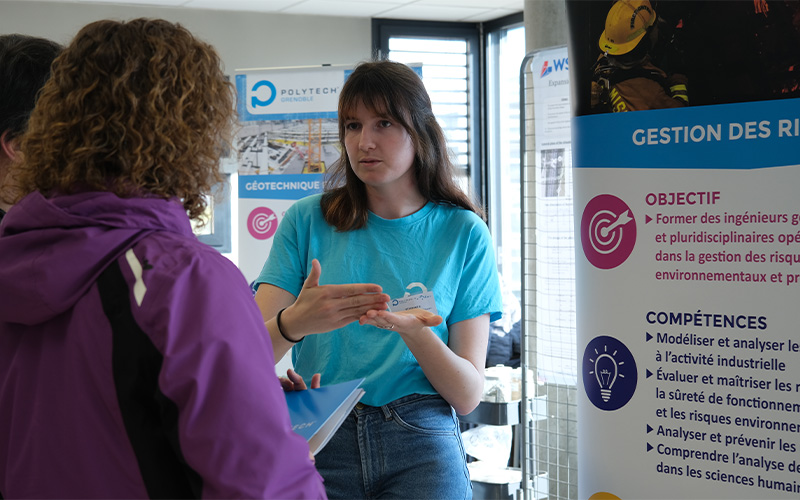 Ainsi, les sept spécialités de l’école étaient représentées par plusieurs enseignants lors de diverses présentations, afin de témoigner des débouchés, d’insertion professionnelle, de mobilité internationale et de professionnalisation. Puis, dans les stands, les enseignants étaient accompagnés d’étudiants des filières, ce qui favorisait les échanges sur le parcours universitaire de l’étudiant avant d’intégrer Polytech.